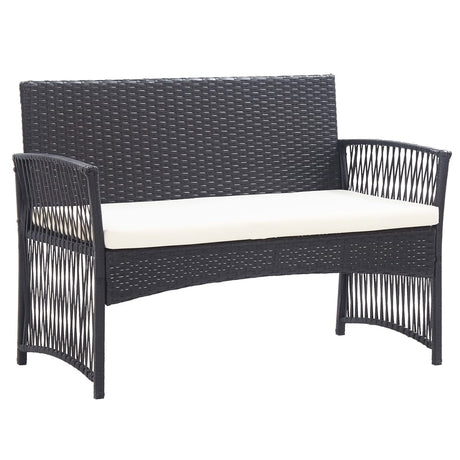4 Piece Garden Lounge Set with Cushion Poly Rattan Black
