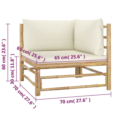 4 Piece Garden Lounge Set with Cream White Cushions Bamboo