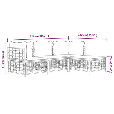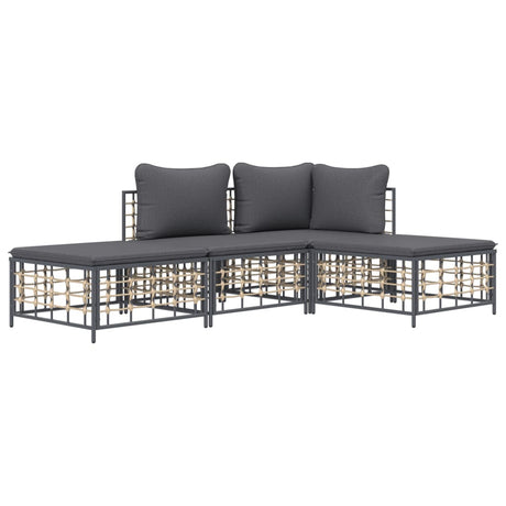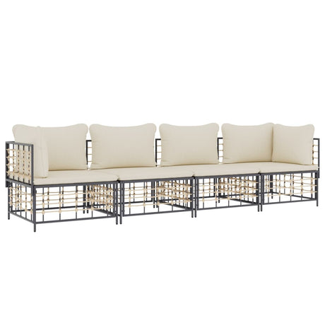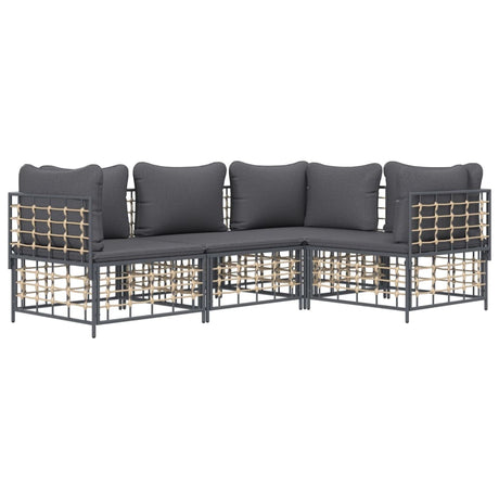 4 Piece Garden Lounge Set with Cushions Anthracite Poly Rattan