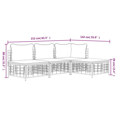 4 Piece Garden Lounge Set with Cushions Anthracite Steel