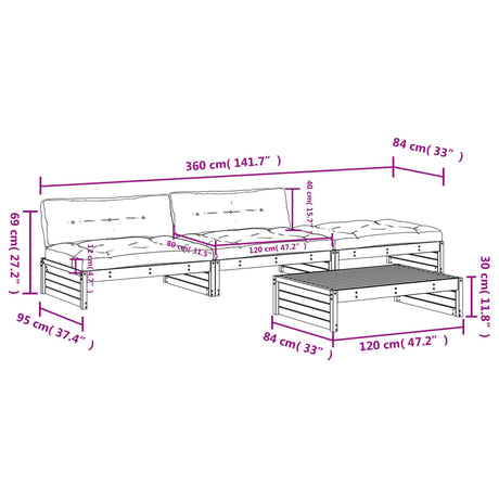 4 Piece Garden Lounge Set with Cushions Solid Pinewood