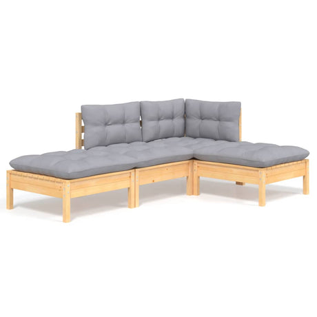 4 Piece Garden Lounge Set with Grey Cushions Pinewood