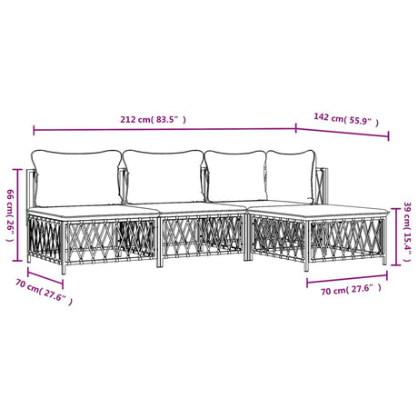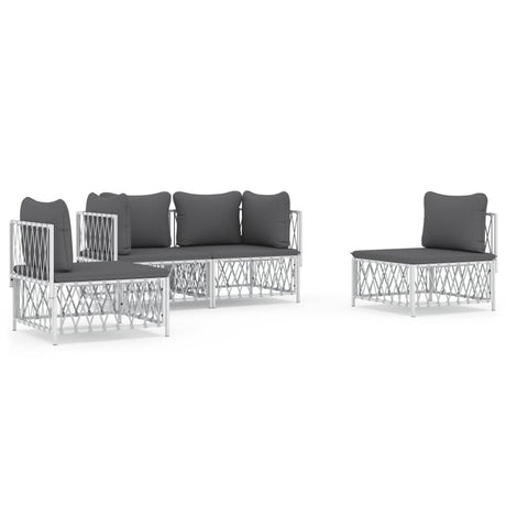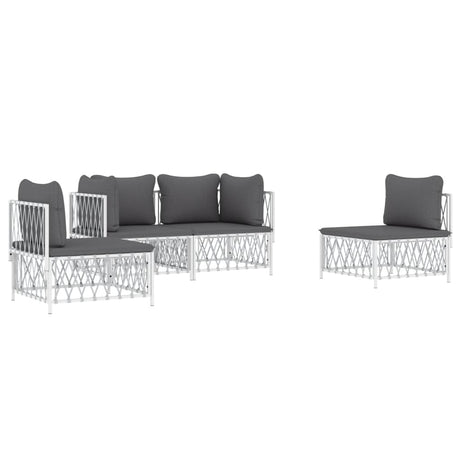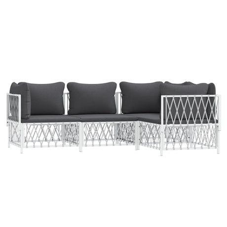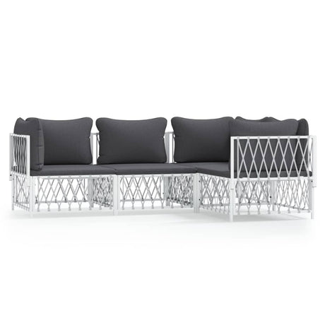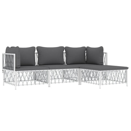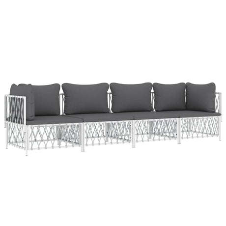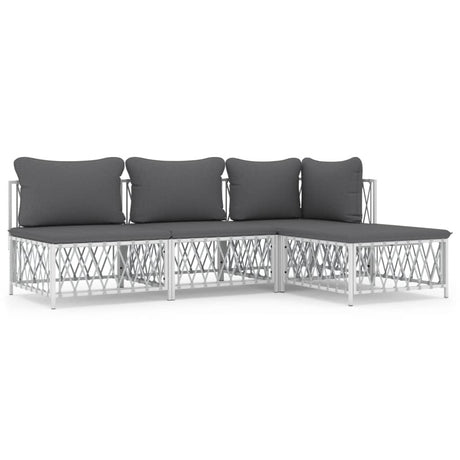 4 Piece Garden Lounge Set with Cushions White Steel