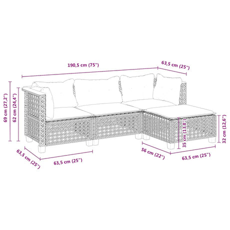 4 Piece Garden Sofa Set with Cushions Beige Poly Rattan