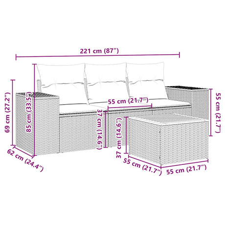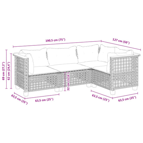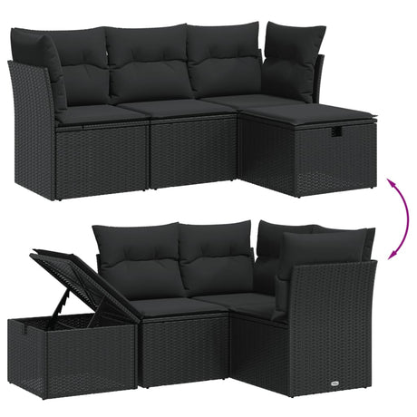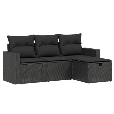 4 Piece Garden Sofa Set with Cushions Black Poly Rattan