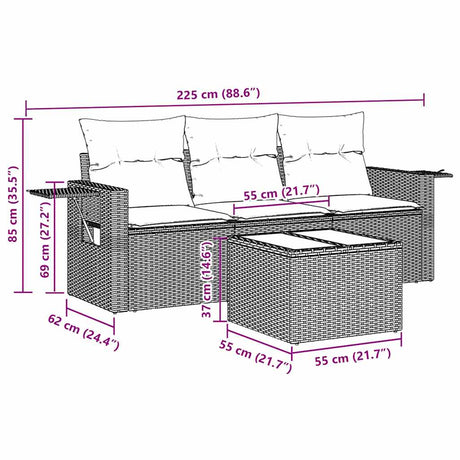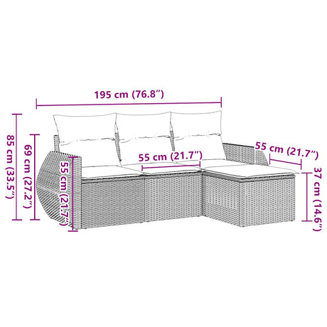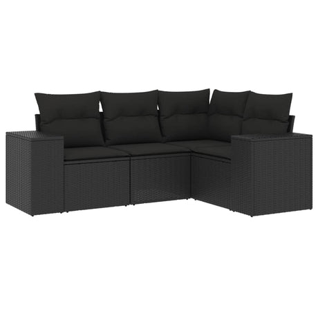 4 Piece Garden Sofa Set with Cushions Black Poly Rattan