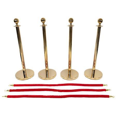 4 x Queue Barriers + 3 Ropes Exhibition Crowd Control Bollards