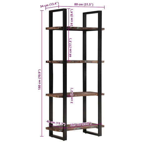 4-Tier Bookcase 80x40x180 cm Solid Reclaimed Wood