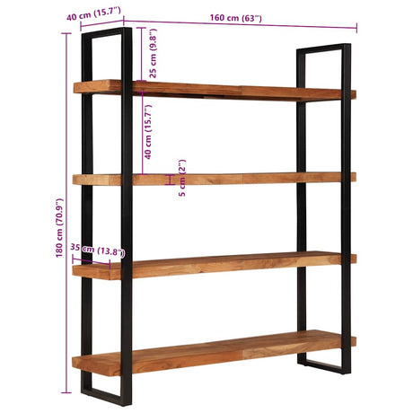 4-Tier Bookcase 160x40x180 cm Solid Acacia Wood