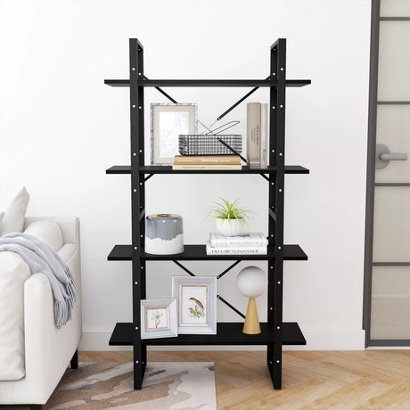 4-Tier Book Cabinet Black 80x30x140 cm Solid Pine Wood