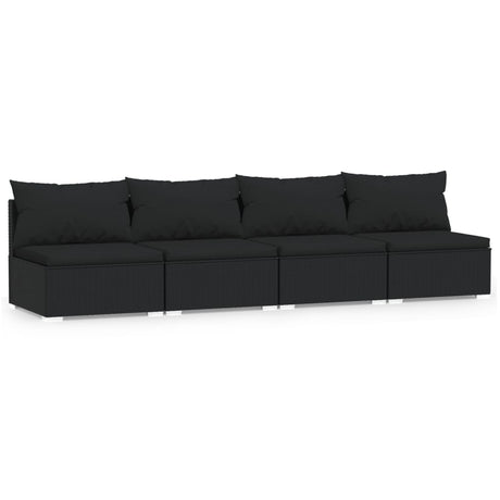 4-Seater Sofa with Cushions Grey Poly Rattan