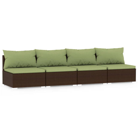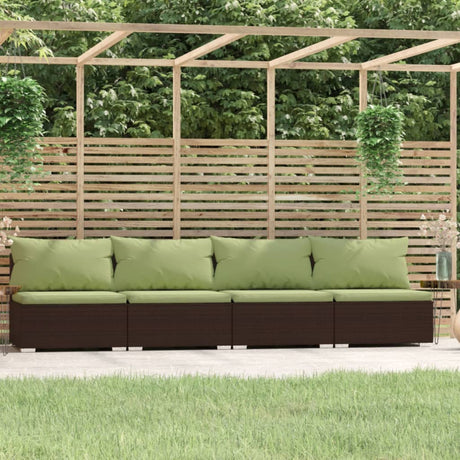 4-Seater Sofa with Cushions Brown Poly Rattan