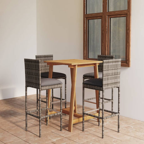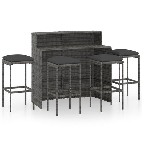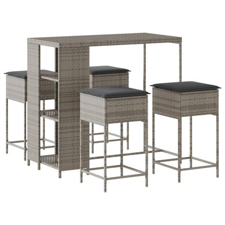 5 Piece Garden Bar Set with Cushions Grey Poly Rattan