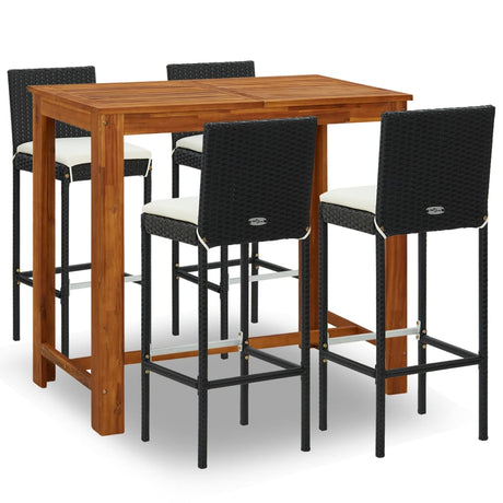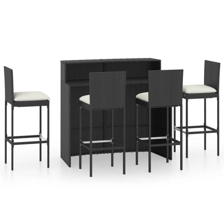 5 Piece Garden Bar Set with Cushions Black Poly Rattan