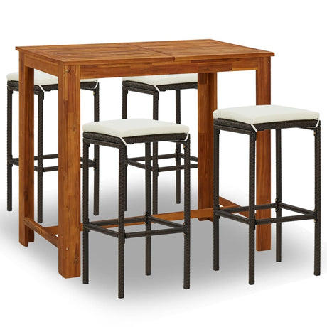5 Piece Garden Bar Set with Cushions Brown Poly Rattan