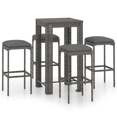 5 Piece Garden Bar Set with Cushions Poly Rattan Grey