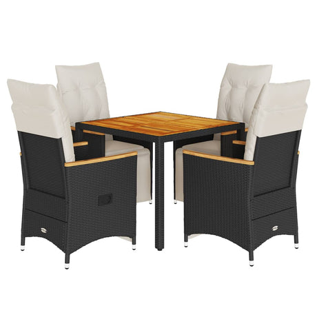 5 Piece Garden Bistro Set Poly Rattan & Solid Acacia Wood Black