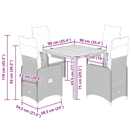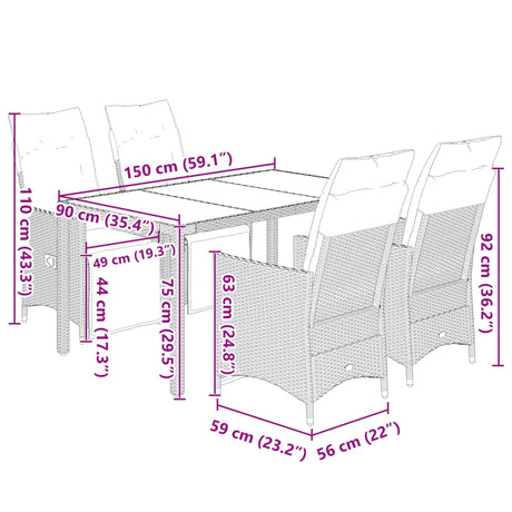 5 Piece Garden Bistro Set with Cushions Beige Poly Rattan