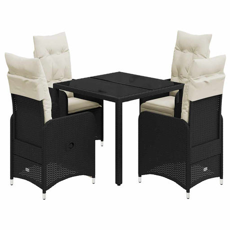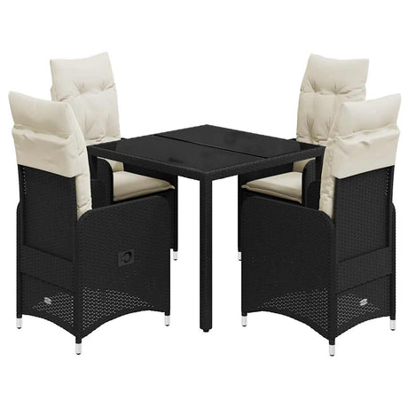 5 Piece Garden Bistro Set Poly Rattan and Tempered Glass Black