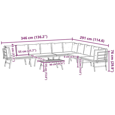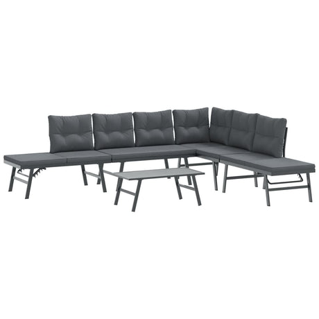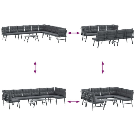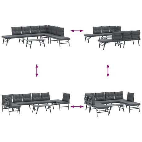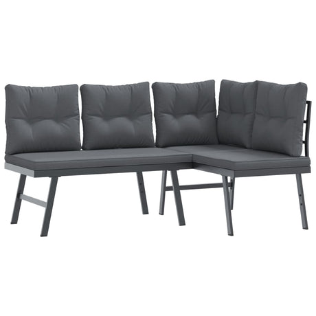 5 Piece Garden Bench Set with Cushions Black Powder-coated Steel