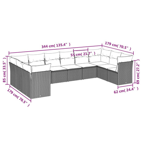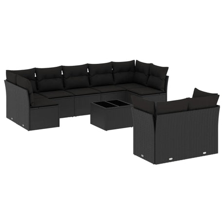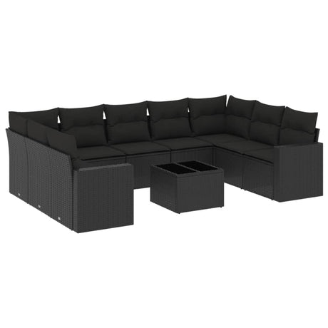 10 Piece Garden Sofa Set with Cushions Black Poly Rattan