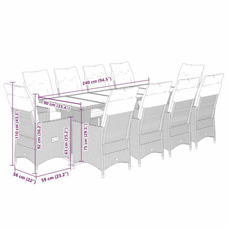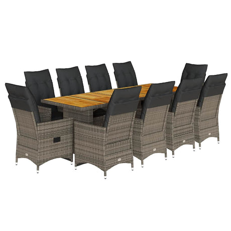 11 Piece Garden Bistro Set with Cushions Grey Poly Rattan