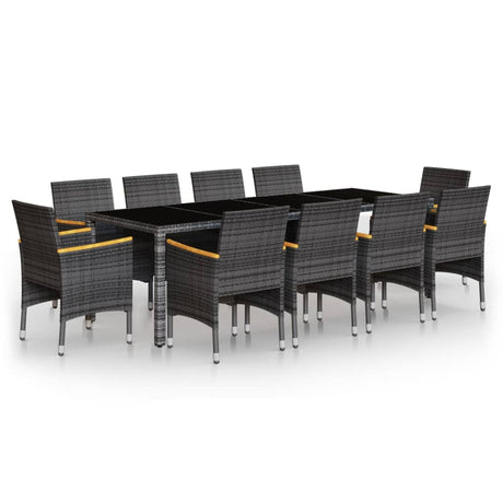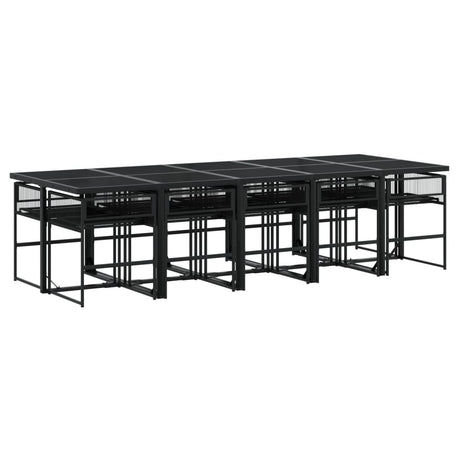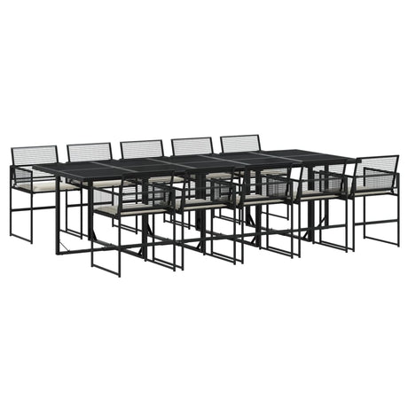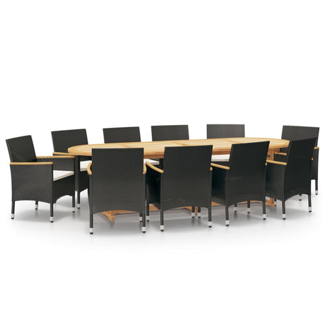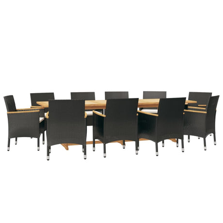11 Piece Garden Dining Set with Cushions Black Poly Rattan
