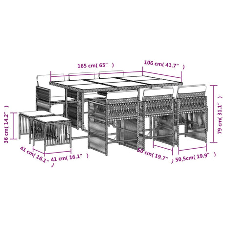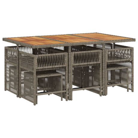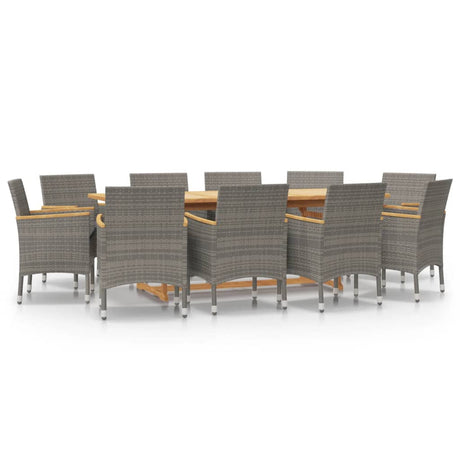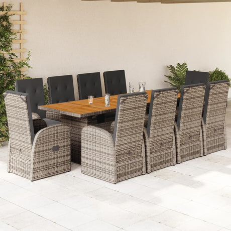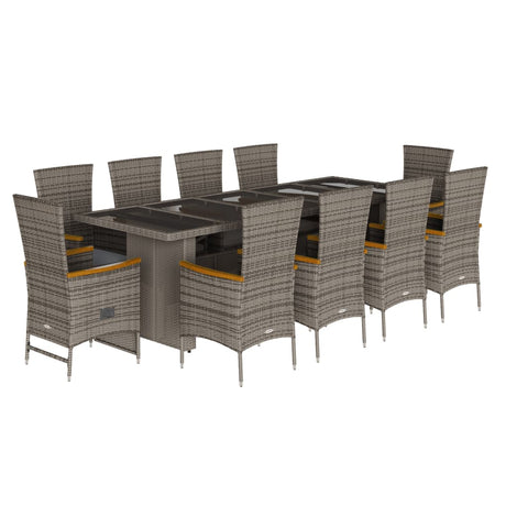 11 Piece Garden Dining Set with Cushions Grey Poly Rattan
