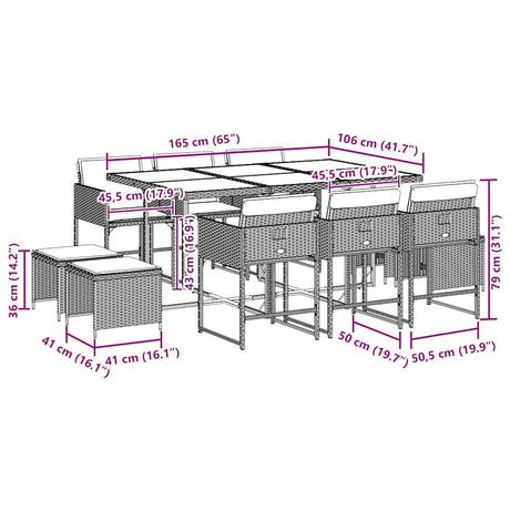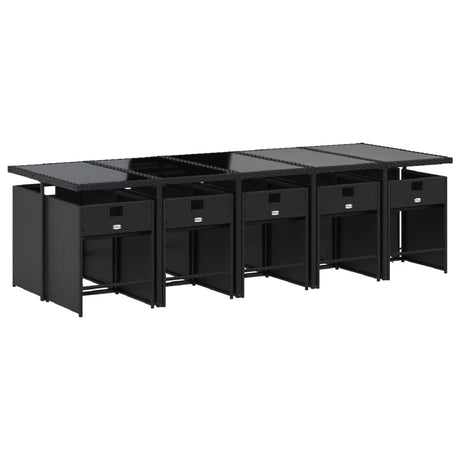 11 Piece Garden Dining Set with Cushions Black Poly Rattan