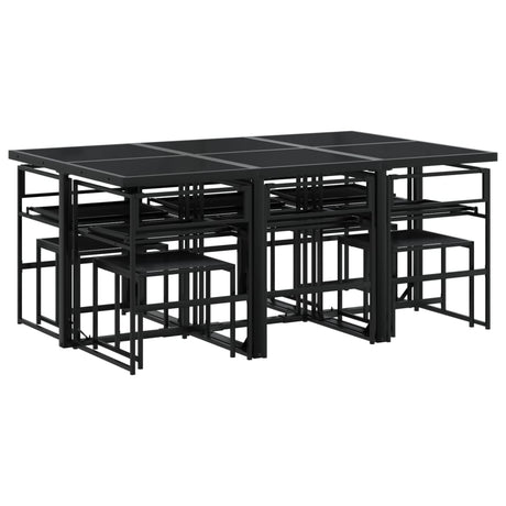 11 Piece Garden Dining Set with Cushions Black Textilene