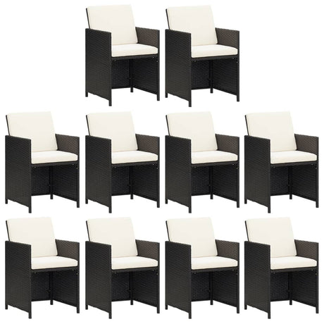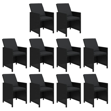 11 Piece Garden Dining Set with Cushions Poly Rattan Black