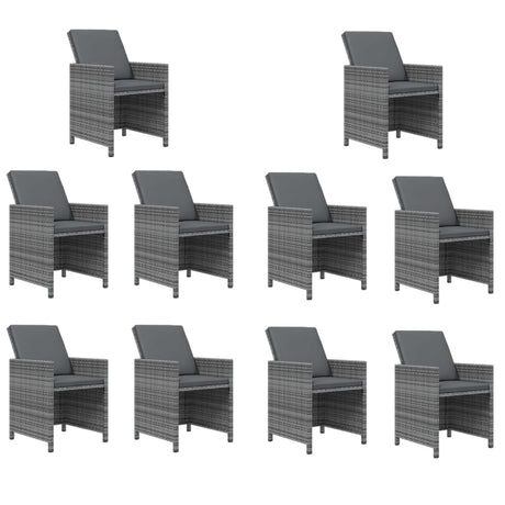 11 Piece Garden Dining Set with Cushions Poly Rattan Grey