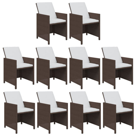 11 Piece Garden Dining Set with Cushions Poly Rattan Brown
