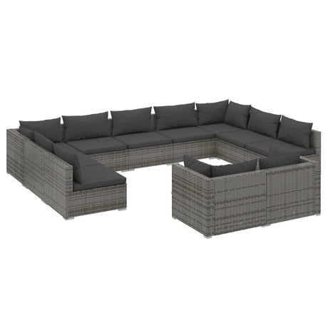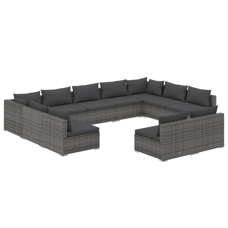 11 Piece Garden Lounge Set with Cushions Grey Poly Rattan