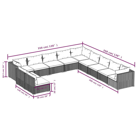 11 Piece Garden Lounge Set with Cushions Brown Poly Rattan