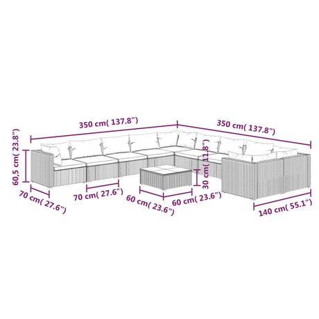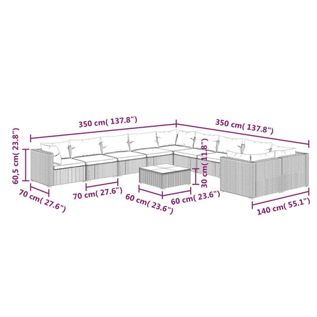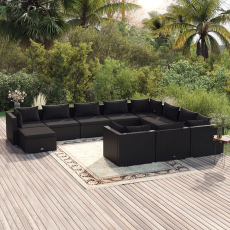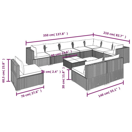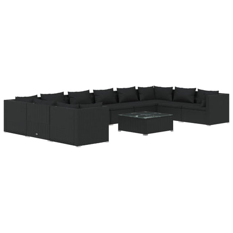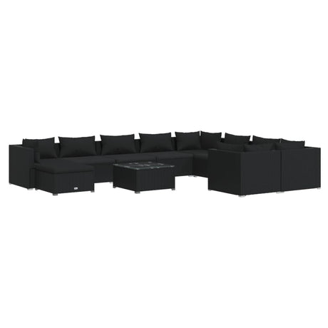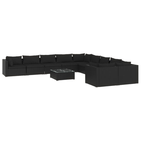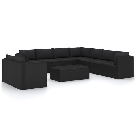 11 Piece Garden Lounge Set with Cushions Poly Rattan Black