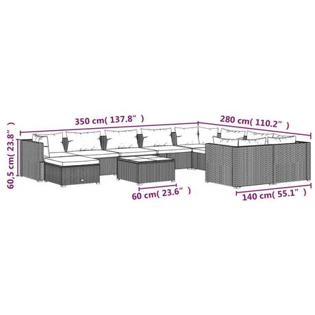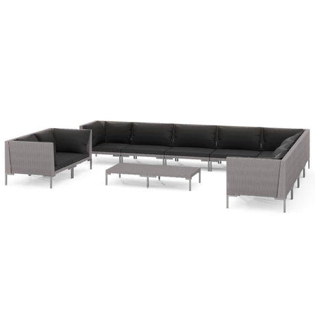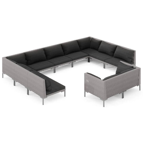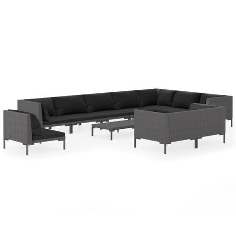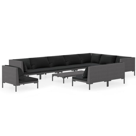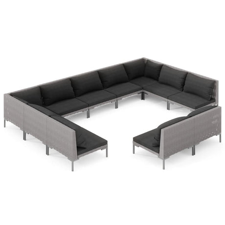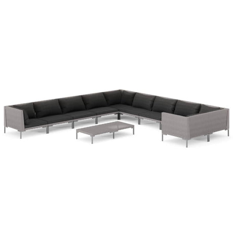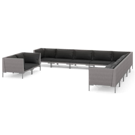 11 Piece Garden Lounge Set with Cushions Poly Rattan Dark Grey