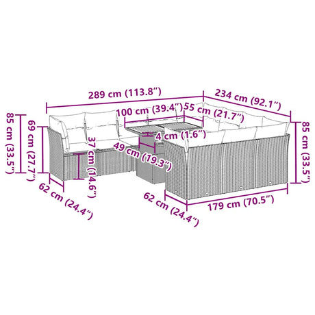11 Piece Garden Sofa Set with Cushions Beige Poly Rattan