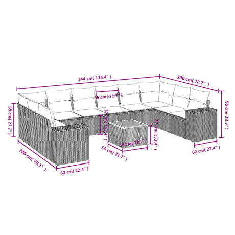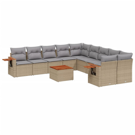 11 Piece Garden Sofa Set with Cushions Beige Poly Rattan