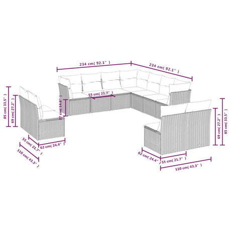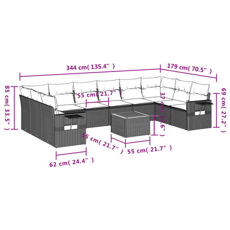 11 Piece Garden Sofa Set with Cushions Beige Poly Rattan