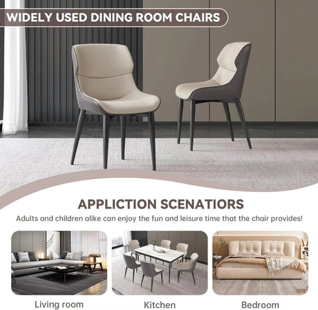 Light Grey Italian Minimal List Dining Chairs PU Retro Chair Cafe Kitchen Modern Metal Legs x2
