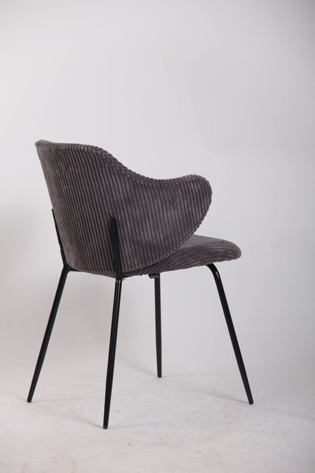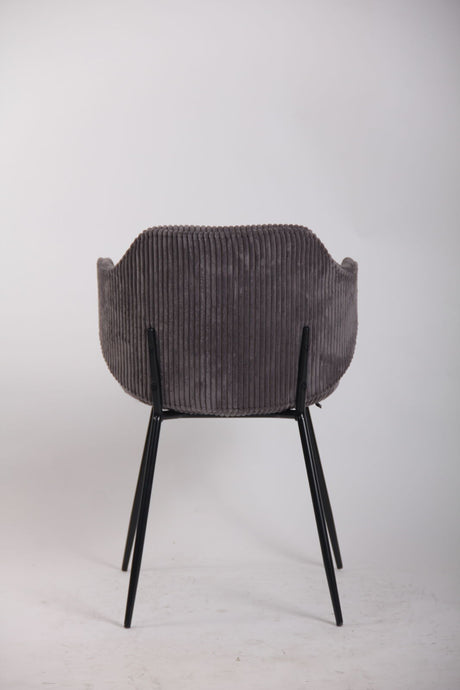Set of 4 Dining Chairs with Corduroy Cord Fabric in Grey