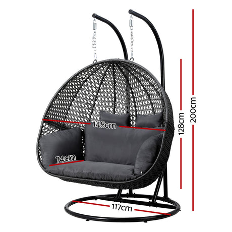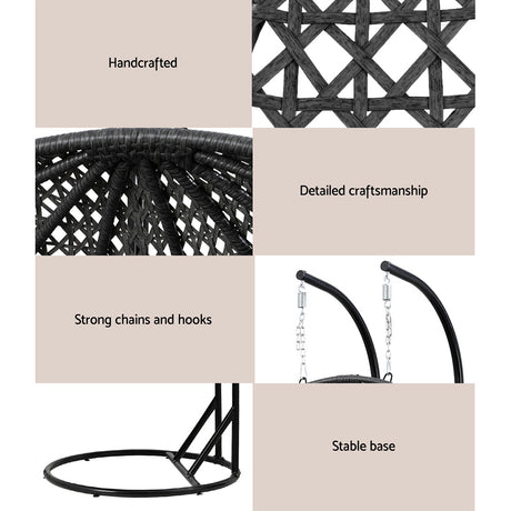Gardeon Outdoor Swing Chair Hanging Rattan Patio Furniture Pod Stand Cushion 2 Seater