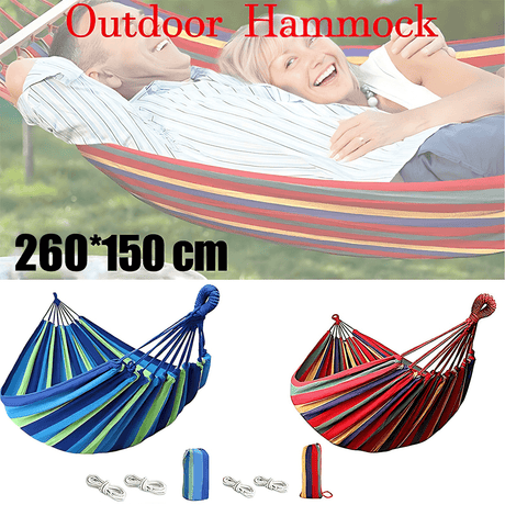 Double Outdoor Hammock 260x150cm with Straps for Camping Hanging Tree Bed - Red