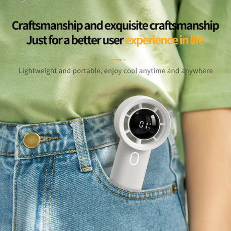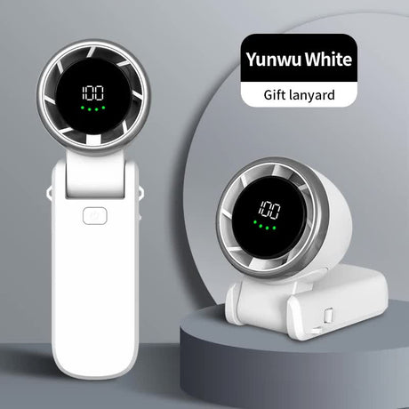 White Portable Mini Bladeless Fan - Rechargeable Handheld Fan with LED Display
