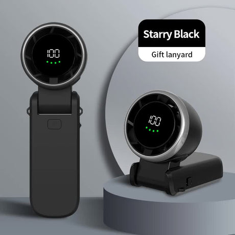Black Portable USB Rechargeable Handheld Fan with Digital Display