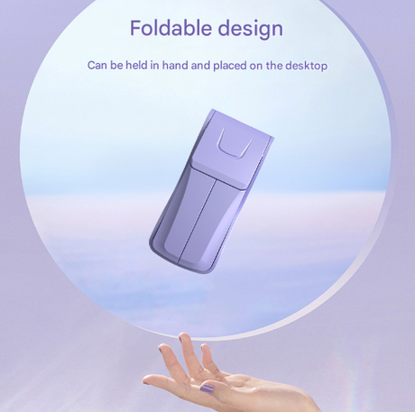 Purple Creative Dual-Head Folding Handheld Fan - USB Rechargeable, 3-Speed Strong Wind, 10.5x4.5x4cm