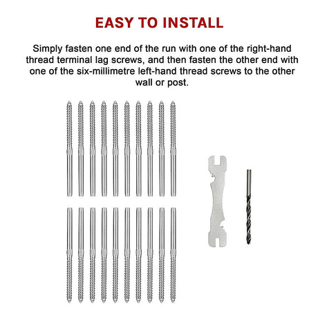 Stainless Steel DIY Rope Balustrade Kit 3.2mm Swage 2 x Lag Screw Term - 10 pack