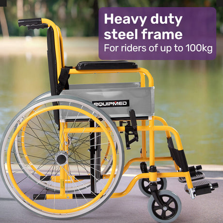 EQUIPMED Folding Aluminium Wheelchair, 20 Wheels, Park Brakes, 100kg Capacity, Grey/Black