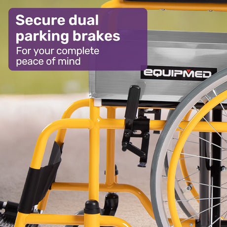 EQUIPMED Folding Aluminium Wheelchair, 20 Wheels, Park Brakes, 100kg Capacity, Orange